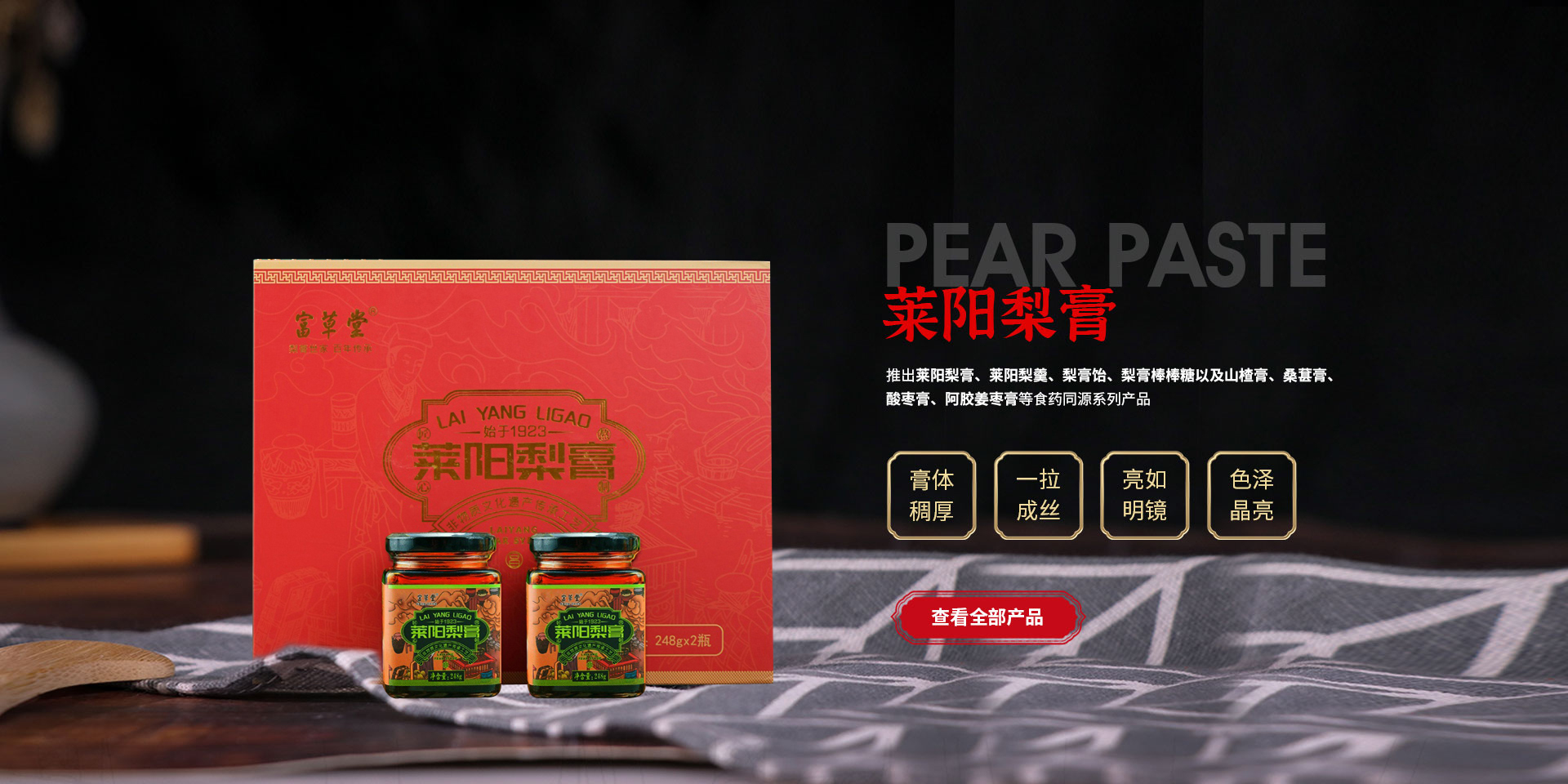 萊陽市昌榮食品有限公司成立于2003年,占地面積2萬余平方米,自有萊陽梨種植基地800余畝,年加工能力50萬噸,是一家集基地種植、原料倉儲(chǔ)、科技研發(fā)、生產(chǎn)加工、市場營銷、文化旅游為一體的集團(tuán)化公司。 公司的“富草堂”品牌,源于1923年創(chuàng)辦的“富草堂大藥房”,距今已有百年歷史......